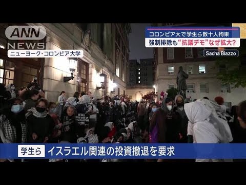 제목: 米コロンビア大などで300人逮捕、ガザ反戦デモ激化 UCLAでも衝突